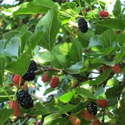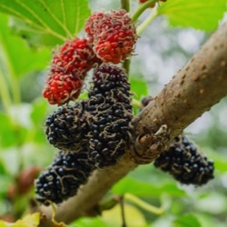 De bessen zijn 3 cm lang en rijpen vanaf juli van rood tot bijna zwart (soms ook rood).