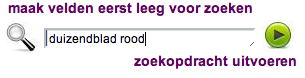 In het veld onder de 'zoek knop' kun je gecombineerd zoeken op tekst. Dus hier kun je een wetenschappelijke of Nederlandse naam invullen, maar ook een standplaats zoals 'zon', droog, of een kleur, zoals 'rood' of eigenschappen zoals 'eetbare bloem'.