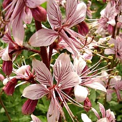 Aansprekende, fijn geaderde roze bloemen met lange meeldraden. Ze vormt op droge plekken waar geen slakken komen in de loop der jaren dichte pollen. Op zandgrond groeien ze het hardst.